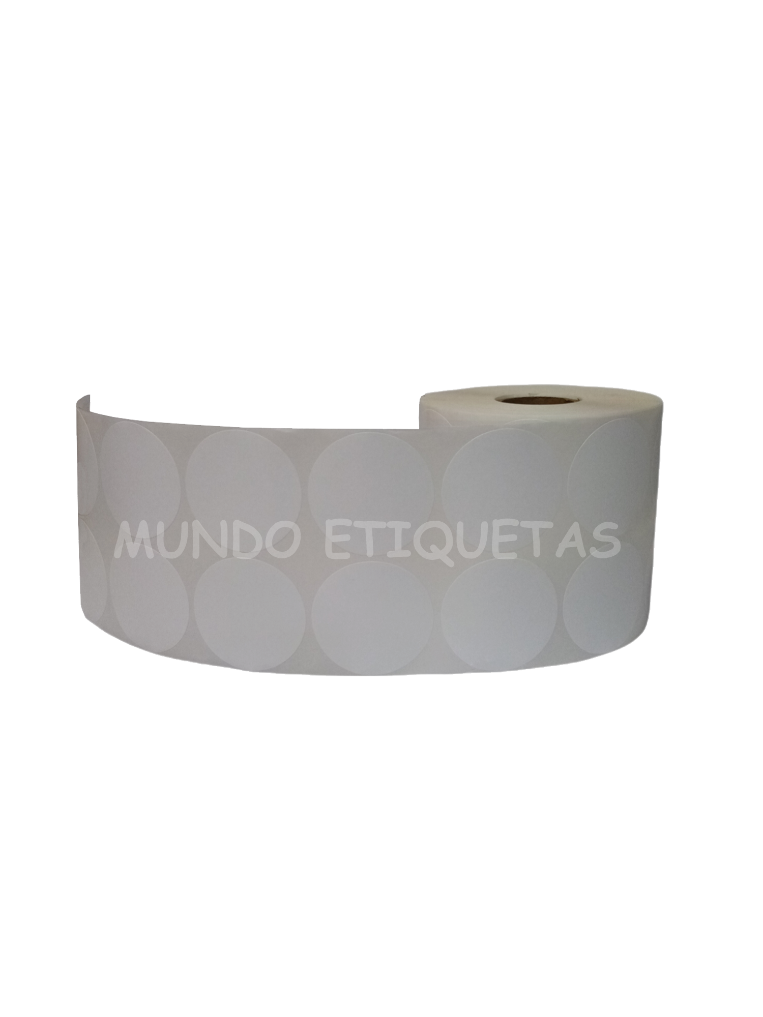 Rollo con 2000 etiquetas autoadhesivas color blanco, circular de 40mm con 2 salidas en cono de 1 pulgada.