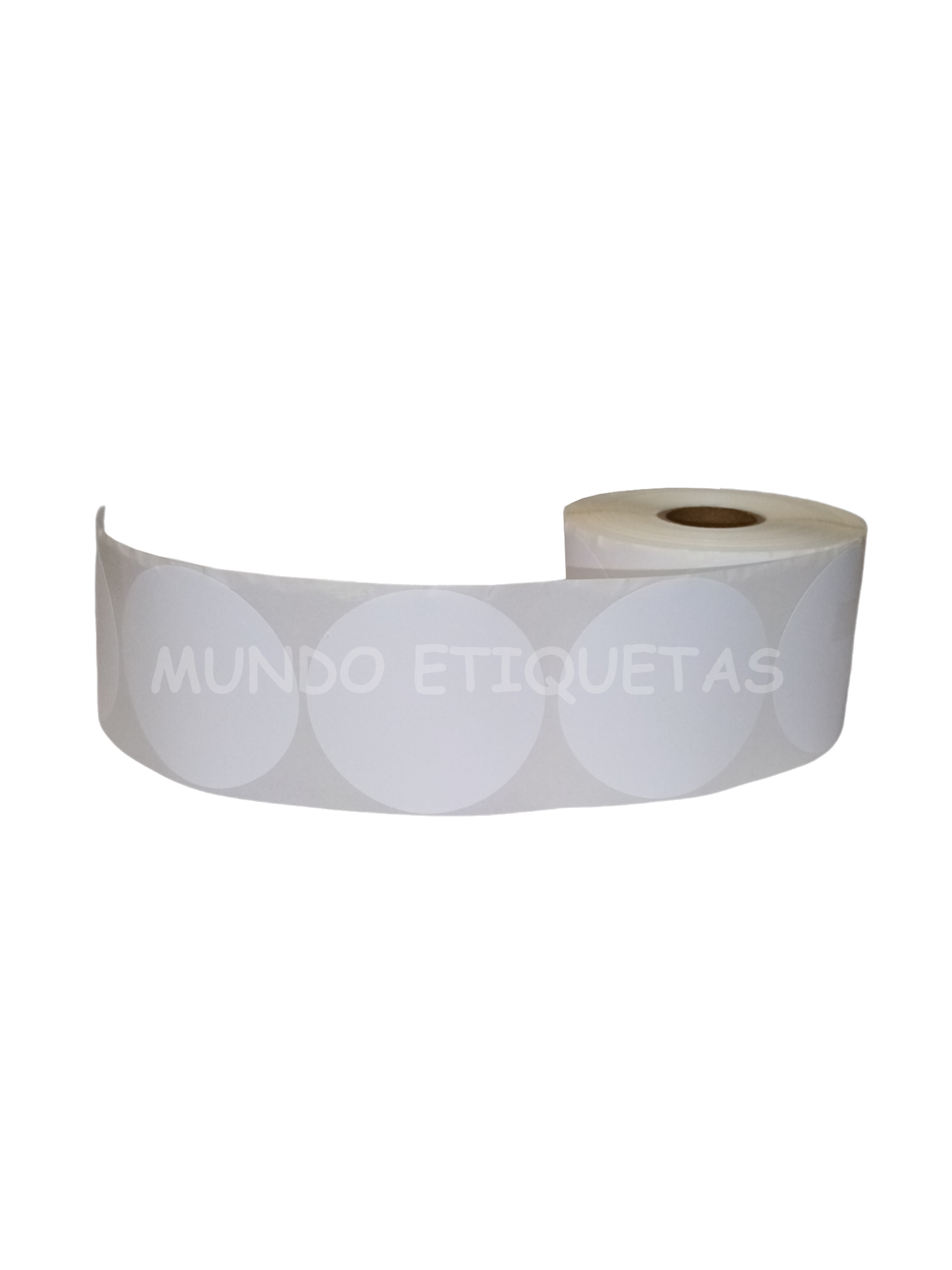 Rollo con 700 etiquetas autoadhesivas color blanco, circular de 60mm con 1 salida en cono de 1 pulgada.